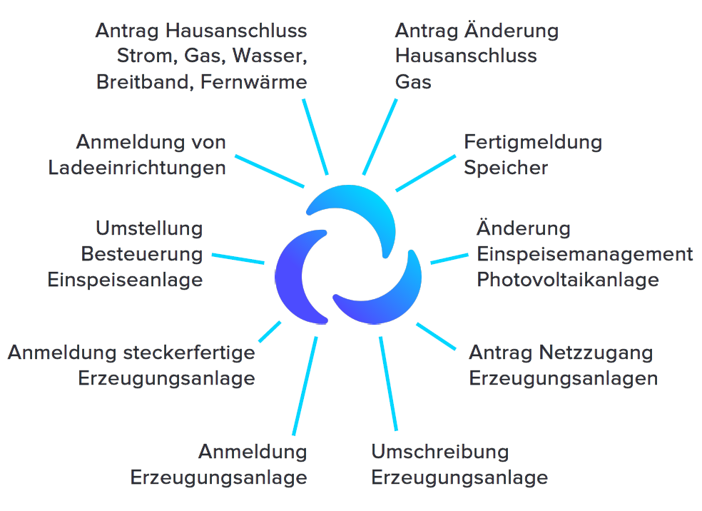 wie z.B. die Anmeldung von EEG und Mehrsparten-Hausanschlüssen