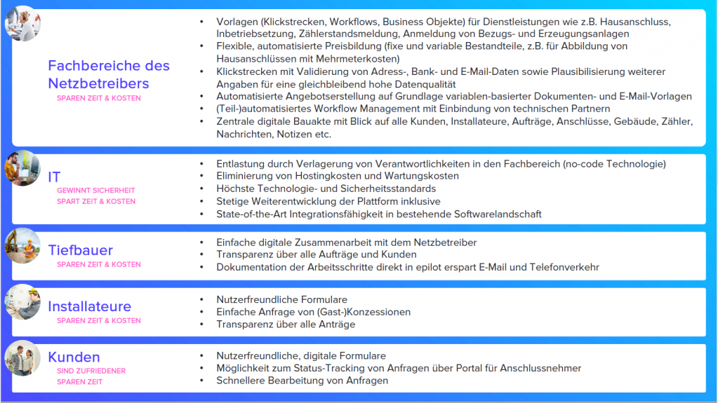 epilot vereinfacht die Zusammenarbeit mit Partnern wie Installateuren, erhöht Ihr Kundenzufriedenheit und erfüllt die rechtlichen Vorgaben für die Digitalisierung und Energiewende.